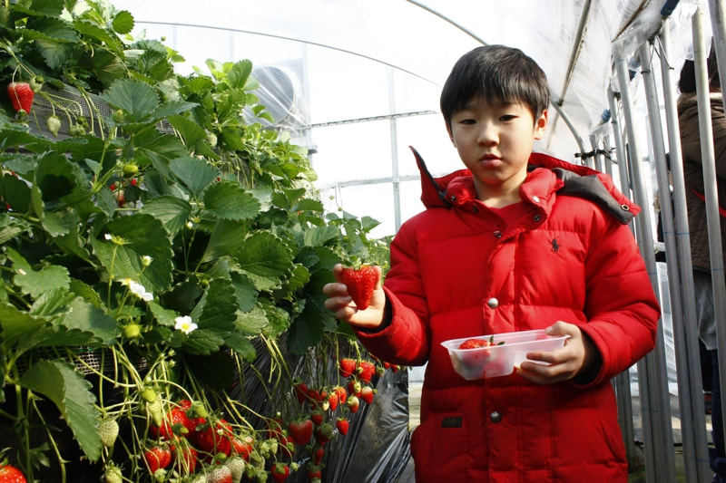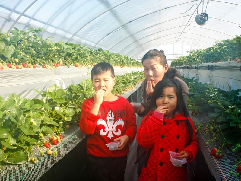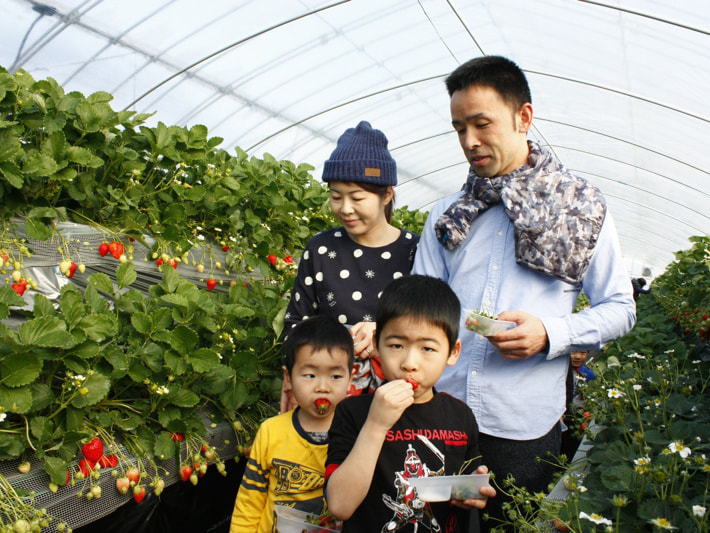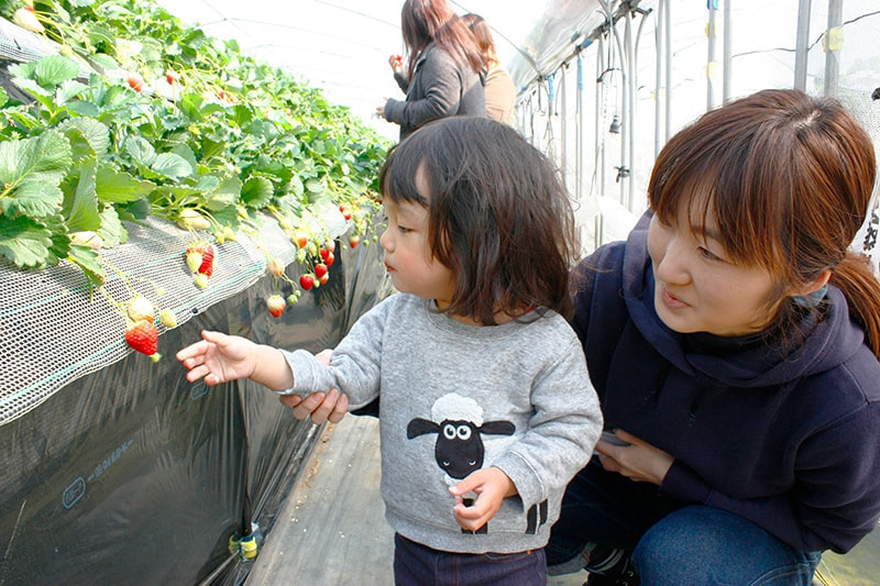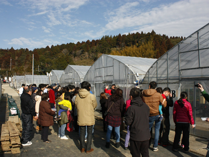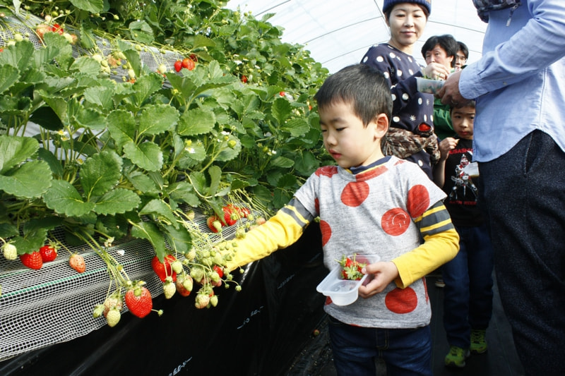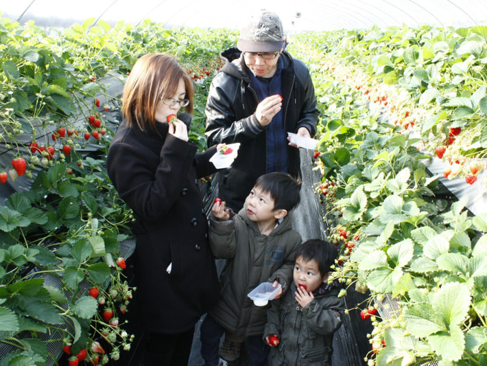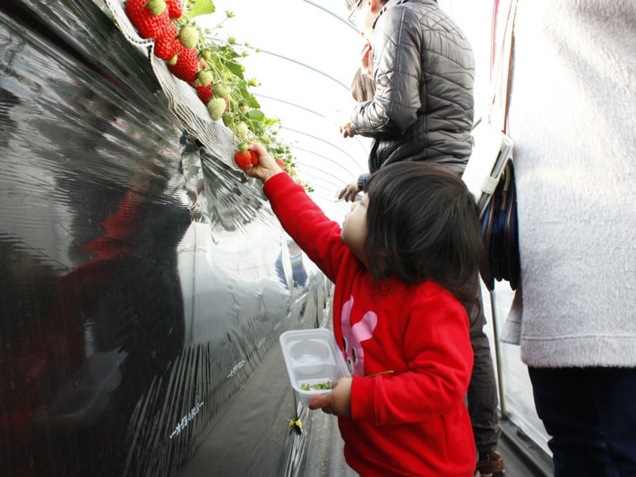 リピーターの方も多いため、混乱することもなく、苺狩りのハウスに入れるのを、親子でわくわくしながら待っています。