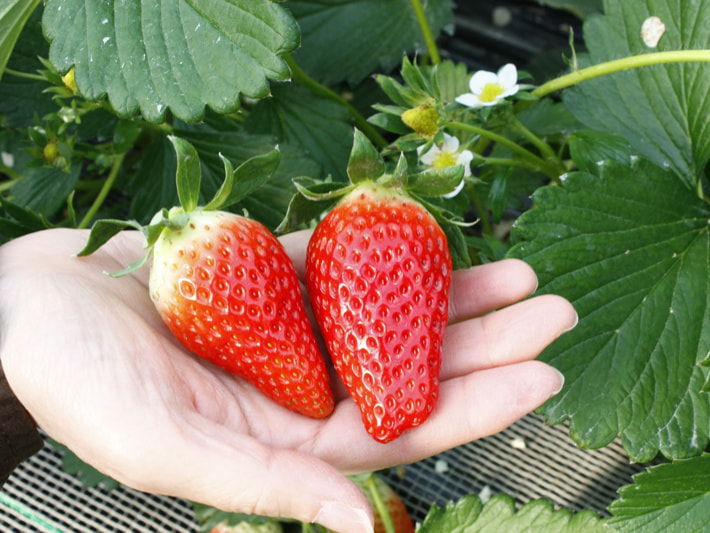 苺狩りの一番美味しい時期は、やはり1〜2月ですが、3月もまだまだ十分美味しい苺が味わえます 。入園料も、3月はちょっとお得ですので、ご家族でご来園の場合は、お土産代くらい浮きますね。同じ品種でも、時期によって実の大きさや、味の乗り具合が違いますので、食べ比べの時によく味わってみてくださいね。