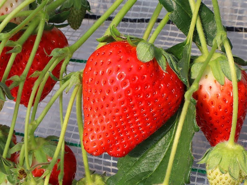苺は品種それぞれで、シーズン中に粒の大きさ、数、味が色々と変化します。いわゆる端境期という期間はどうしても発生しますので、品種によっては前に来た時よりも粒が小さいなとか、数が少ないなという場合が有りますのでご承知おきください。