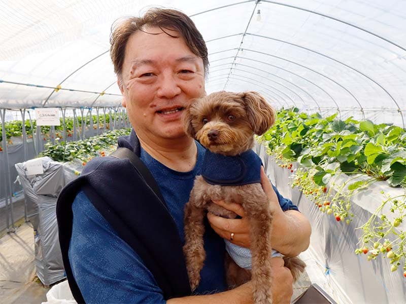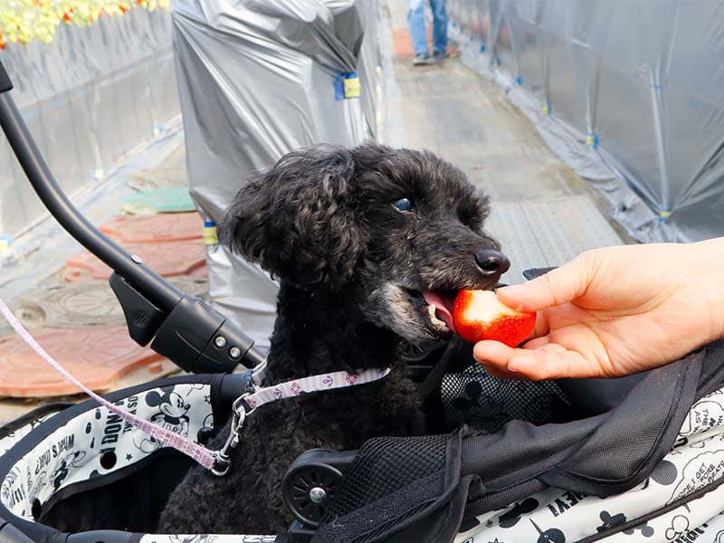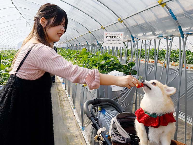当園は、わんちゃんと苺狩りできるハウスが有り、予約のお客様が苺を食べさせてあげていました。お聞きしてみると、苺が大好きな子も居れば、食べない子も居るんですね。貸し切りなので、ゆったり苺狩りを楽しんでください。